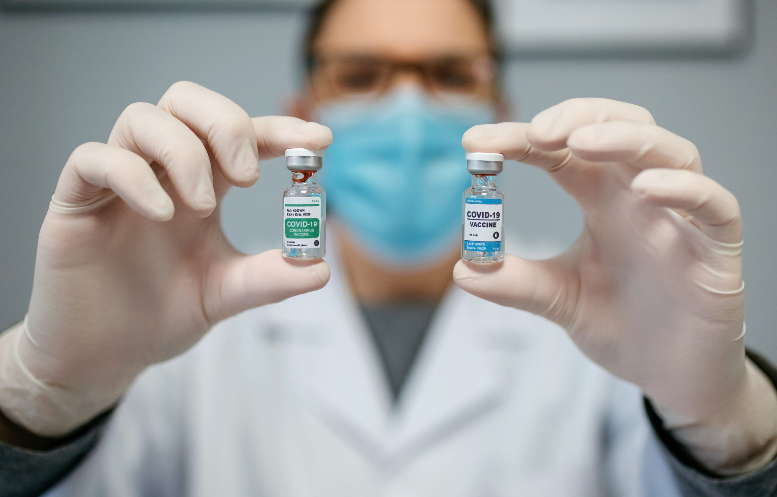 Doctor showing two coronavirus vaccine options