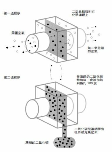 p.194-「氣候工作」公司的二氧化碳移除系統有兩道程序。