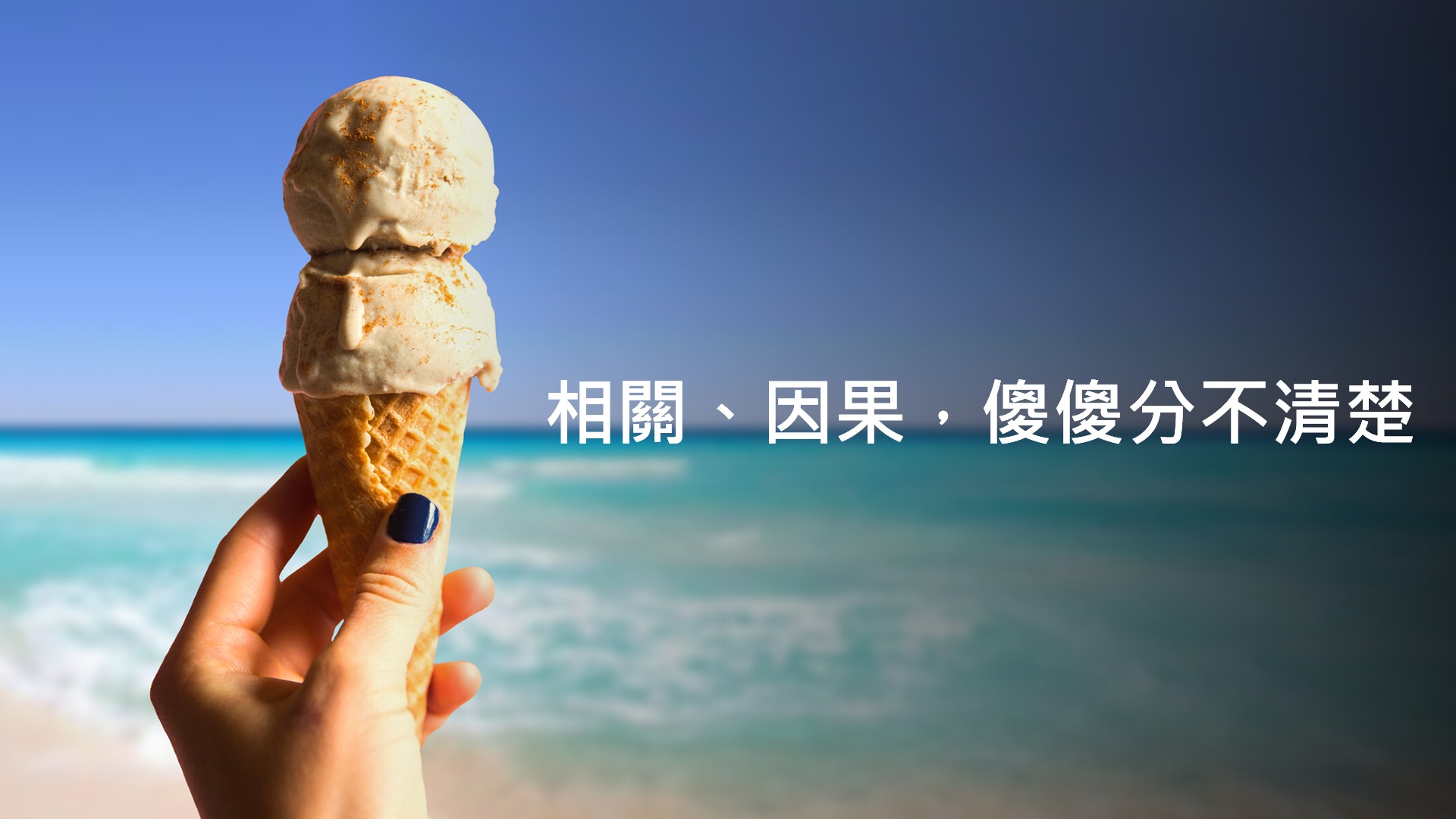 相信看到這樣的訊息,任何心智能力正常的人,都不會下結論說:冰淇淋「造成」了溺水。因為所有人都知道,「冰淇淋銷量」與「溺死人數」雖然有相關,但它們並沒有因果關係。