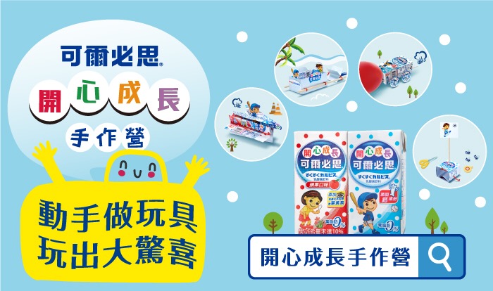 「可爾必思」在這個假期推出開心成長手作營,完全符合 Steam 教育。Steam 教育是整合科學(Science)、科技(Technology)、工程(Engineering)、藝術(Art)、數學(Mathematics),將各領域的知識相結合應用,更延伸出許多科學玩具,讓孩子在親子手作玩具的過程中,了解科學相關的知識並培養解決真實世界問題的能力。