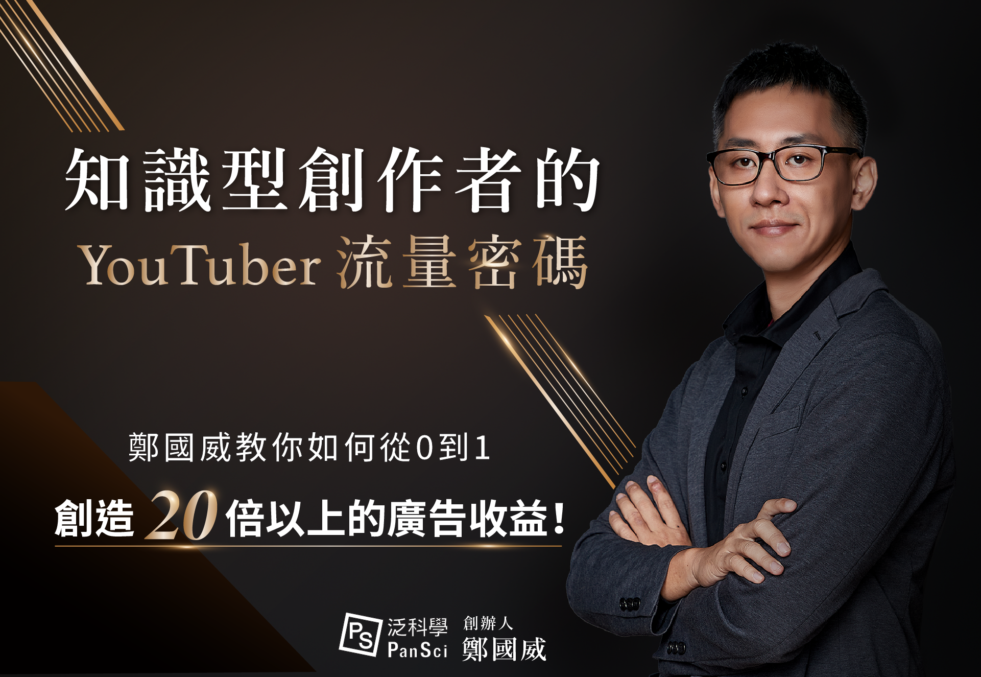 台灣最大知識科學媒體「泛科學」創辦人 aka 知識長鄭國威,將開設「知識型創作者的 YouTuber 流量密碼鍊金術!」線上課程,不僅分享自己從文字知識型網站「泛科學」,轉型為知識型 Youtuber 的心路歷程,也手把手教你如何在詭譎多變的影音環境中,找到專業知識與流量的甜蜜點。
