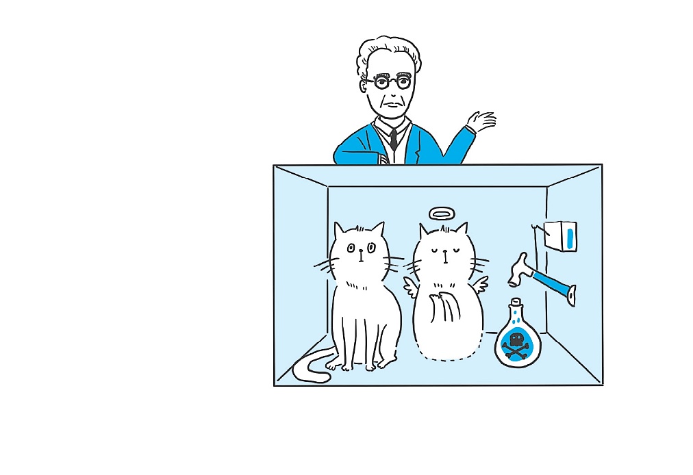 談到量子力學,「薛丁格的貓」此知名想像實驗必定會浮現在讀者的腦海中吧?此實驗探討一隻貓的狀態究竟是活或死的,而實驗結果是:貓同時是活和死的「疊加」。如果以古典物理學來思考,會顯得極其荒謬;但若以微觀世界視之,這項理論其實符合電子波粒二象性的機率概念。