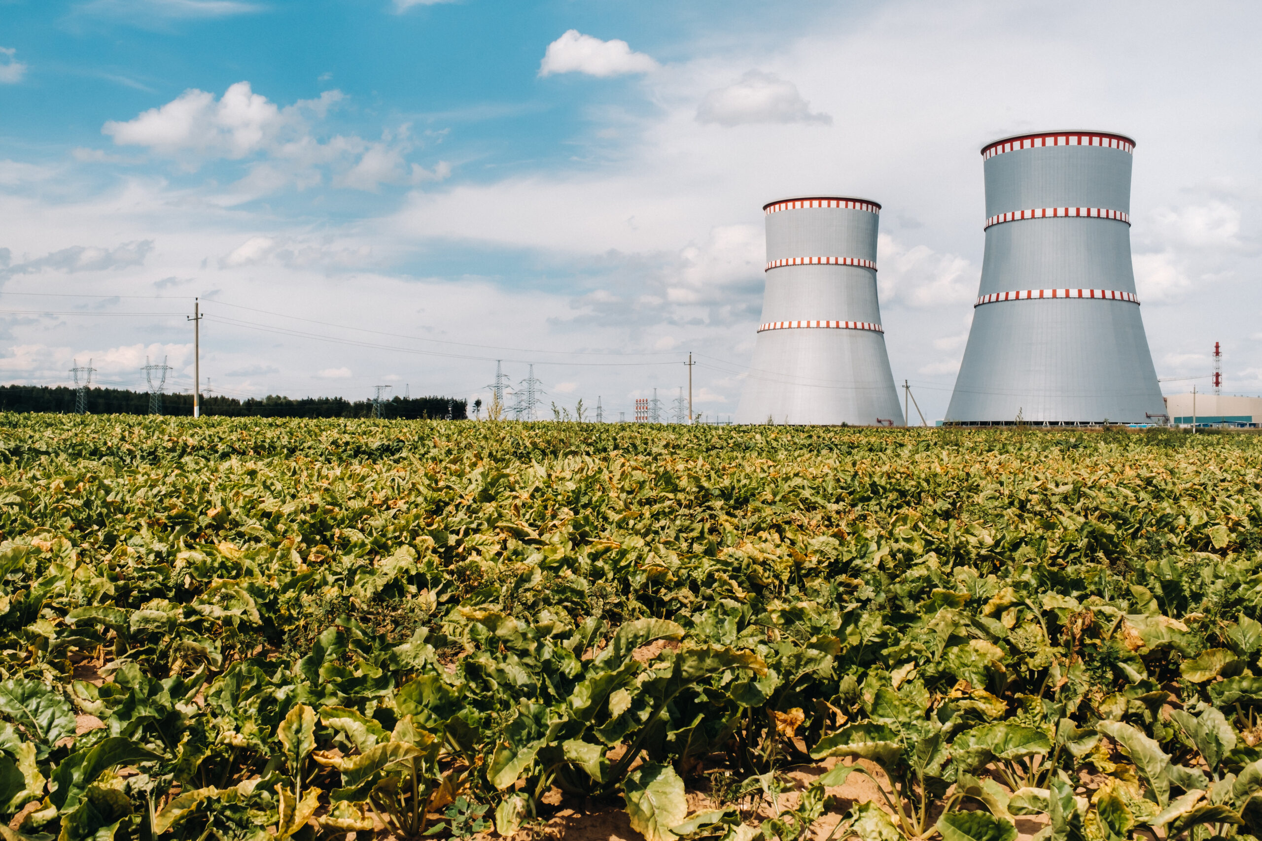 Belarusian nuclear power plant in Ostrovets district.Field around the nuclear power plant. Belarus.