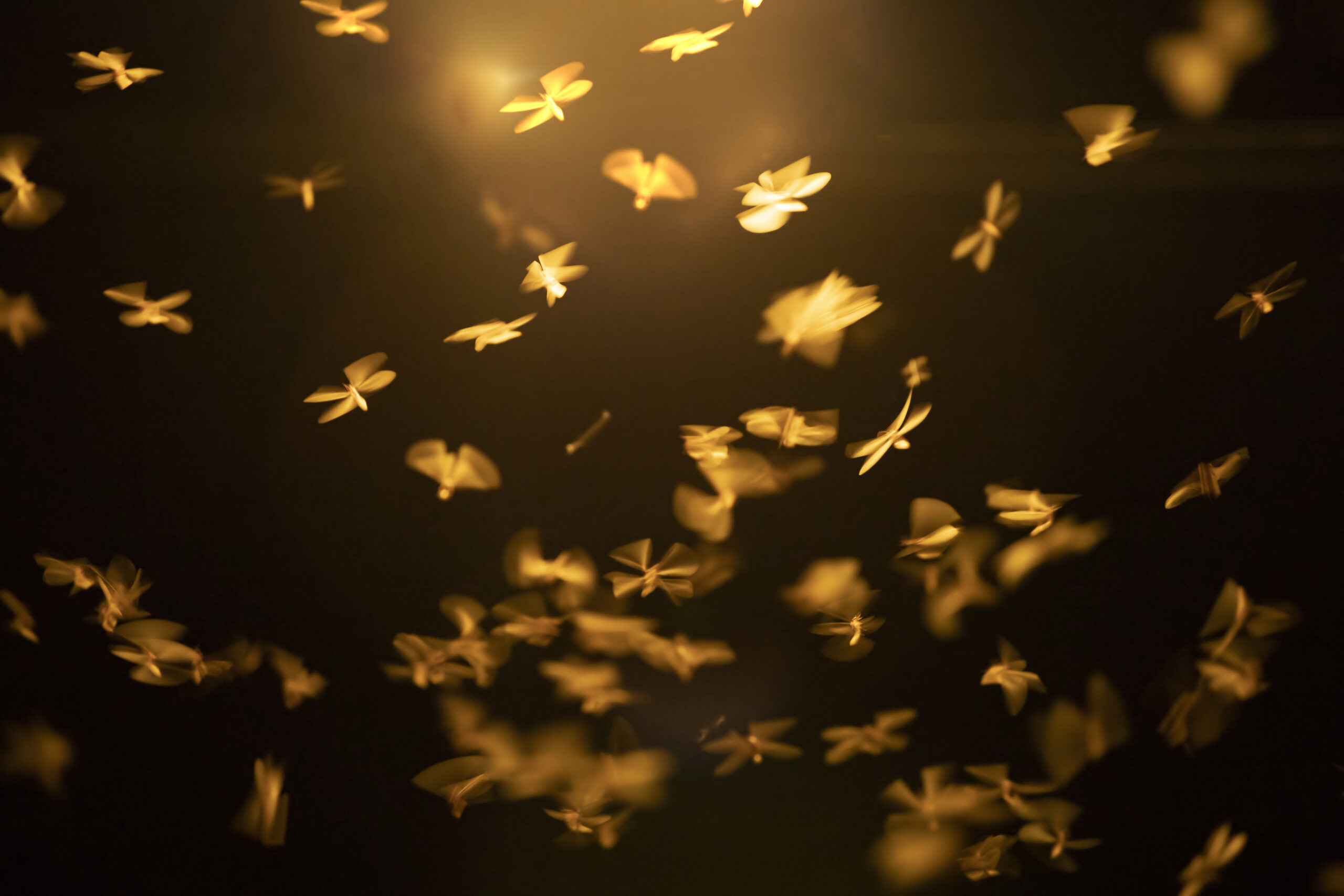 Abstract, creative motion blur background of flying insects in the night.
