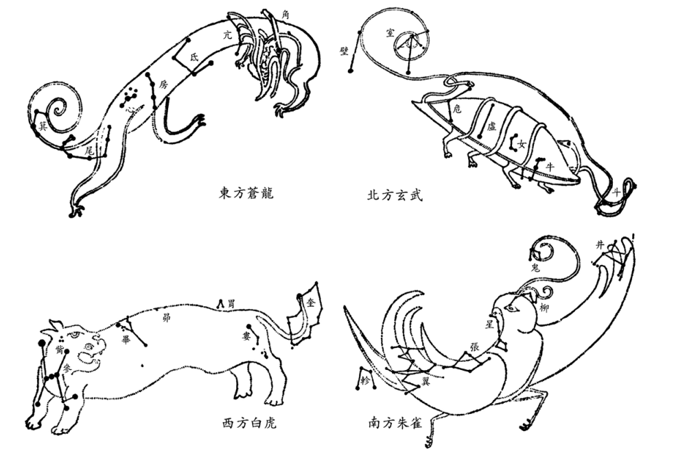 中國古代將一組星星稱為一個星宿(又稱星官),魏晉時統合成 283 個,含有星星 1464 顆。在這 283 個星宿中,最為人熟知的是二十八宿,也就是月亮運行軌道(白道)所經過的星宿。