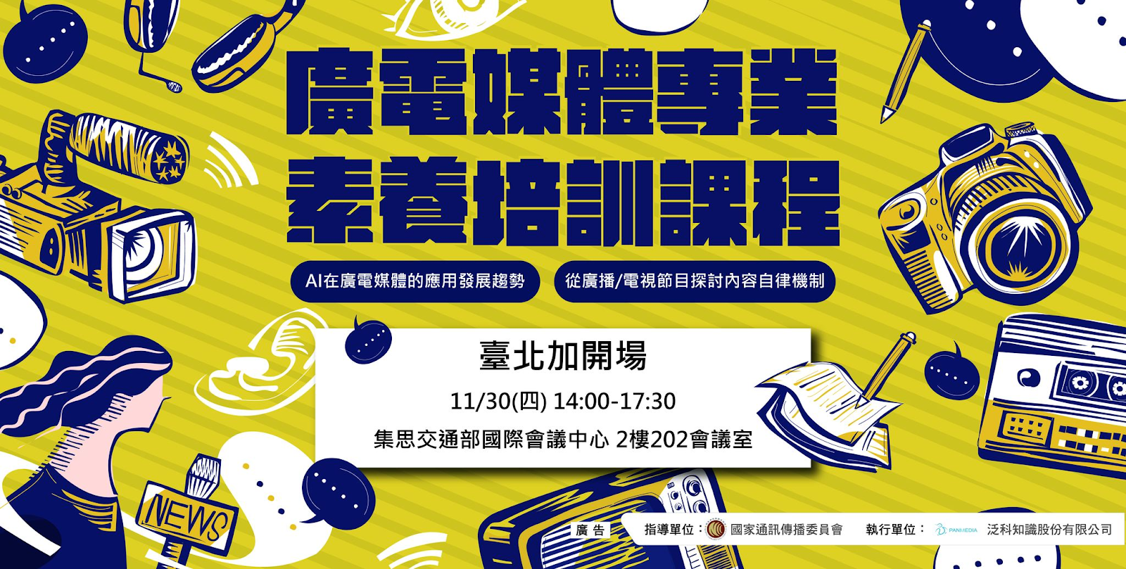 國家通訊傳播委員會(下稱NCC)為健全廣電事業發展、提升從業人員專業素養,促使廣電事業製播優質節目及傳遞正確資訊,今(112)年援例舉辦「廣電媒體專業素養」培訓課程。本趟知識列車自今年 8 月從臺北出發,9 月開往臺中及高雄,10 月抵達花蓮。