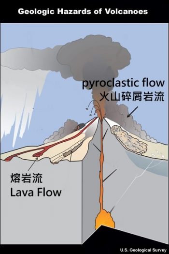 不同溫度的岩漿從火山口流出,會形成不同性質的熔岩流(高溫)與火山碎屑岩流(低溫)。(圖片來源:U.S. Geological Survey;圖片編輯:作者)