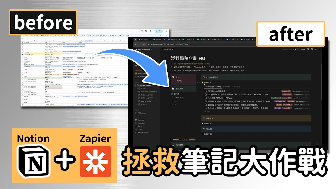 今天來分享我們用 notion 做知識管理的實作過程與心得,不過,我們發現這樣還不夠用,生為 AI 懶人 YOUTUBER,最好有天上掉下來的題目跟素材,所以還串了 zapier 做自動化 AI 新聞收集!
