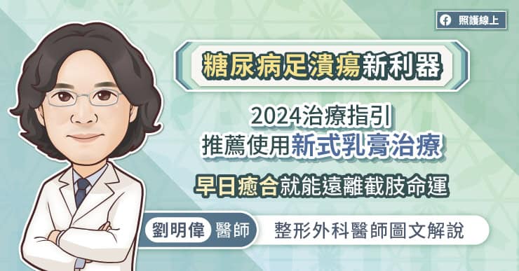 在過去,糖尿病足潰瘍的照護大多使用抗生素藥膏。劉明偉醫師說,使用抗生素藥膏的主要目的是預防感染,避免進展為蜂窩性組織炎、骨髓炎等狀況。