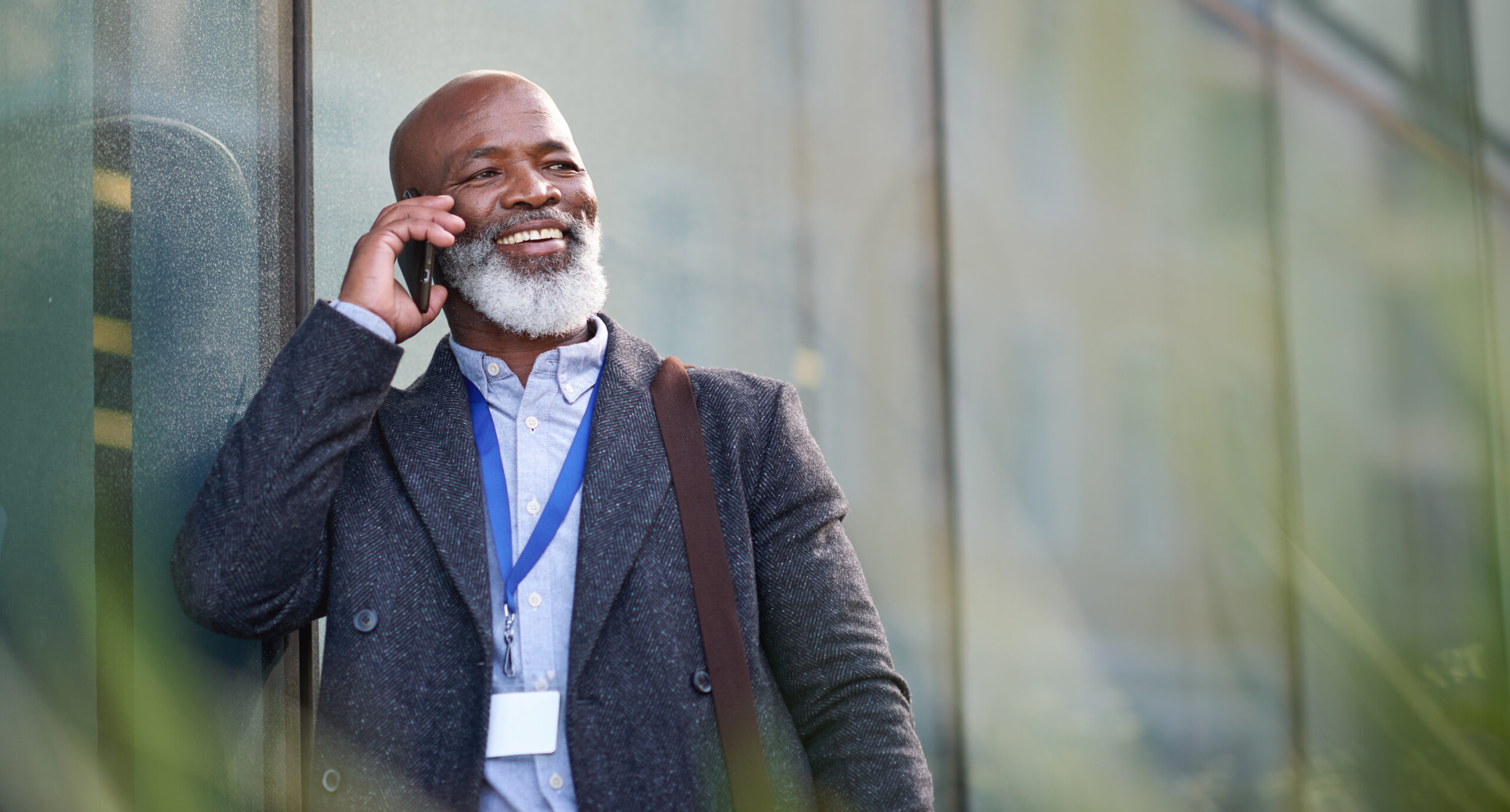 African american businessman using smartphone talking on mobile phone call having conversation in c.