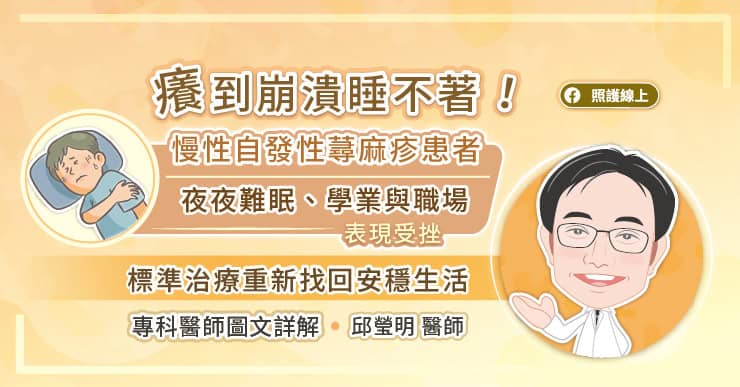 慢性自發性蕁麻疹不是單純的皮膚病,而是一種長期影響生活的自體免疫疾病。它讓患者夜夜難眠、白天精神渙散,甚至在人際關係與心理健康上帶來沉重壓力。邱瑩明醫師強調:「不該只是忍耐或擦藥膏,更不能把它誤當成單純過敏。唯有正確認識、規律治療,患者才有機會重新掌握生活。」