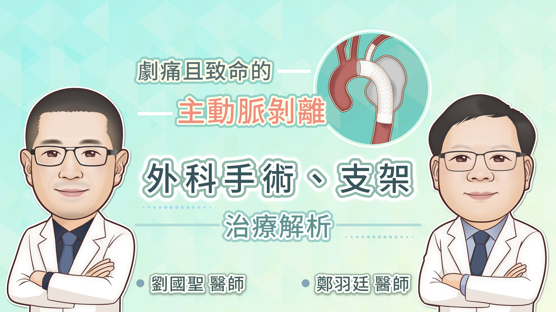 劉國聖醫師:主動脈剝離最常見的症狀是突發性的嚴重胸痛,會轉移到背部。少部分的病人是用器官灌流不良來表現,比如說,如果發生下肢血管灌流不良,會出現腳麻痺、腳痛;如果是腸子的血管灌流不良,就會出現急性腹痛的症狀。