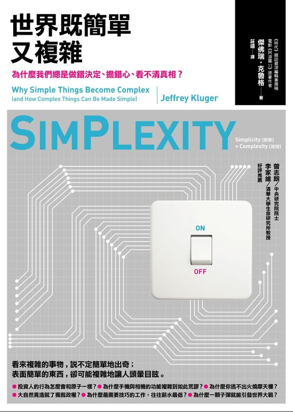 《世界既簡單又複雜:為什麼我們總是做錯決定、擔錯心、看不清真相》(Simplexity: Why Simple Things Become Complex (and How Complex Things Can Be Made Simple))是一本令人好奇的書,這可以從《世界既簡單又複雜》的目錄中問的問題看出來: