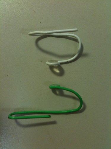 迴紋針方面,建議使用那種有包裹著塑膠的那種,不要用沒有塑膠包的鐵絲那種,原因是這一層塑膠有一點彈性,提供一些緩衝,也不會刮到手機;為何要用迴紋針?一則是它為日常生活最常見的,到處隨手可得,即便需要到文具行去買一整盒,也沒幾個錢,再者,成品的體積根本不佔空間,而且可以任意彎曲變形,任何帶有鏡頭的手機都可用,在野地使用很方便,不需要多帶任何額外的工具。