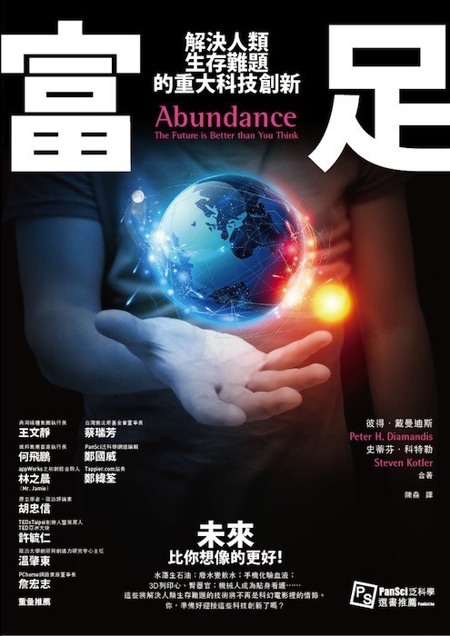 接下來,我平均每看一章節就要消化個幾天,因為太驚人了,每每看到都忍不住去查證所附的文獻,或是自行去看相關的新聞。這也是我不得不佩服作者之處,先深入的了解問題在哪,再來一一用現今已經開始發展,或是即將會問世的科技與研究,來說明人類可能用什麼方式解決問題。最開始我很吃驚的一點是,非洲的一些未開發或開發中的國家,雖然電話之類的有線通訊甚少,但他們可以直接進入無線世代,用廉價的平板電腦或手機,可以和我們一樣享受行動上網,進而達到刺激經濟進步的方式,未來建構在這樣的基礎上,無論是教育、醫療、民生等用途都可以透過雲端途徑來解決。或許只要一小滴血,不用專業的分析儀器,用簡單的晶片試劑便能作初步篩檢,而未來的機器人也未必要像科幻小說一樣是個萬能的人形機器人,可以是一台具有人工智慧的電腦,或是一個可以施行小型手術的自動機器手臂等等。教育、醫療的普及便能隨著各種進步的科技逐漸實現,當然,在網際網路初問世時,並未有人能想到這些用途,不是嗎?