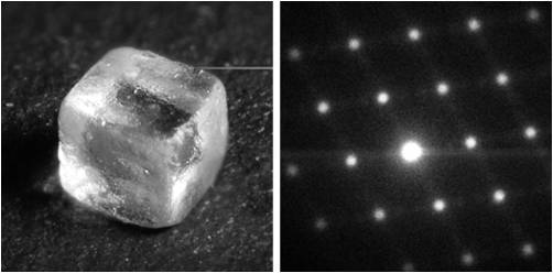 聽起來頭頭是道,但我們究竟是怎麼知道的?原子和分子實在過於微小,無法用肉眼分辨,但我們師法自然,瞭解到如何借助其他物理現象進行探測,藉此揭開我們單憑肉眼辨識無法解讀的謎團。光線就是我們可以拿來運用的現象之一,尤其是我們無法看到的光,像是 X 光。X 光的能量很強,而且可以進入非常小的空間中 (比方說原子之間的空間!)。如果有人用 X 光照射一個物體,例如食鹽結晶,光線會穿透原子之間的空間,然後穿出結晶體,與其他從結晶體不同地方穿出的光線結合。結果就是出現排列成陣的閃亮光點,這些光點排列出來的間距和幾何圖形,就反映了出這個結晶體的結構。