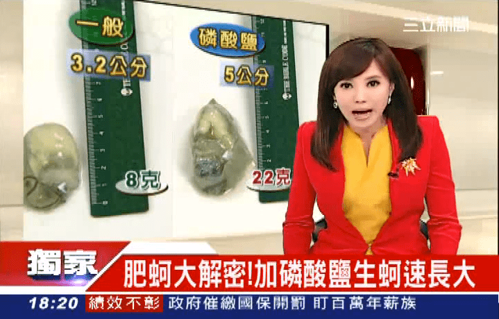今天三立出了獨家新聞:越「吸」越大?肥美蚵仔恐加「磷酸鹽」