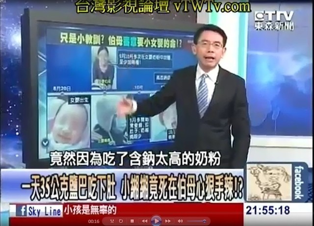 鹽巴的成分是氯化鈉,小緗緗的病名是高鈉血症,這個不幸的事件,讓『鈉』成了致死的字眼。不到三個月的緗緗,因為吃了含鈉太高的奶粉而致死,螢幕上打出『一天35公克鹽巴吃下肚,小緗緗竟死在伯母心狠手辣!?』