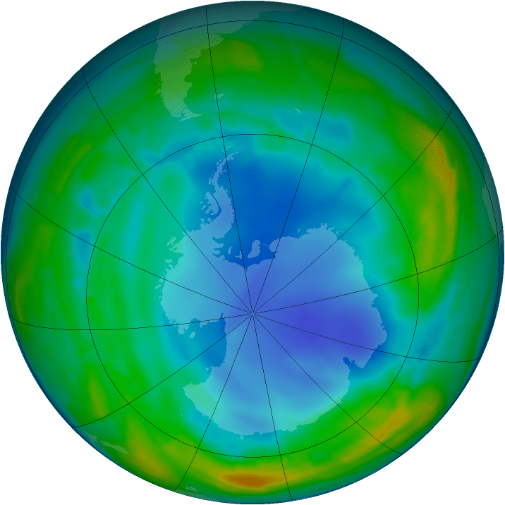而在1980年代,科學家發現南極上空的臭氧層出現破洞,1年當中以南半球的春天,也就是9至11月時破洞最為嚴重,部分地區的臭氧濃度甚至減少70%。追根究柢,科學家發現臭氧洞是由當時廣泛使用於噴霧劑、冷媒中的氟氯碳化物(chlorofluorocarbons, CFCs)所導致,故在1987年的蒙特婁議定書中,全球全面禁止使用氟氯碳化物,臭氧洞才獲得控制。