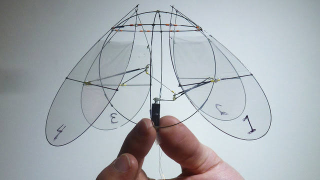 紐約大學柯朗數學科學研究所(Courant Institute)的Leif Ristroph博士,設計了這款輕巧的飛行機械。這款「飛天機械水母」沒有任何感應器,單靠翅膀的運動來保持機身平衡。Ristroph博士希望能設計出別於直升機、機械昆蟲的新型態滯空飛行器,所以他第一個思考的問題是:「最簡單能產生升力的機械構造是什麼?」