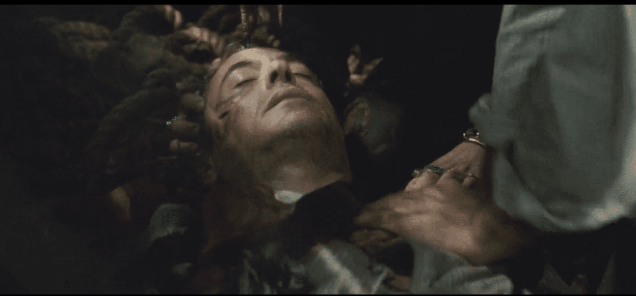 話說福爾摩斯和華生一行人終於發現了邪惡教授莫瑞提的地下兵工廠,知道他想掀起歐洲大戰,賺取戰爭財。但是當他們遭受攻擊逃出那裡的時候,福爾摩斯卻因負傷過重而導致休克沒了心跳血壓。飾演華生醫師的裘德洛在確定福爾摩斯的情況後,首先開始在他的胸口重捶一下,接著開始心肺復甦術(Cardiopulmonary Resuscitation,俗稱CPR)──這包括口對口人工呼吸和體外心臟按摩。