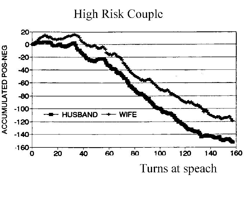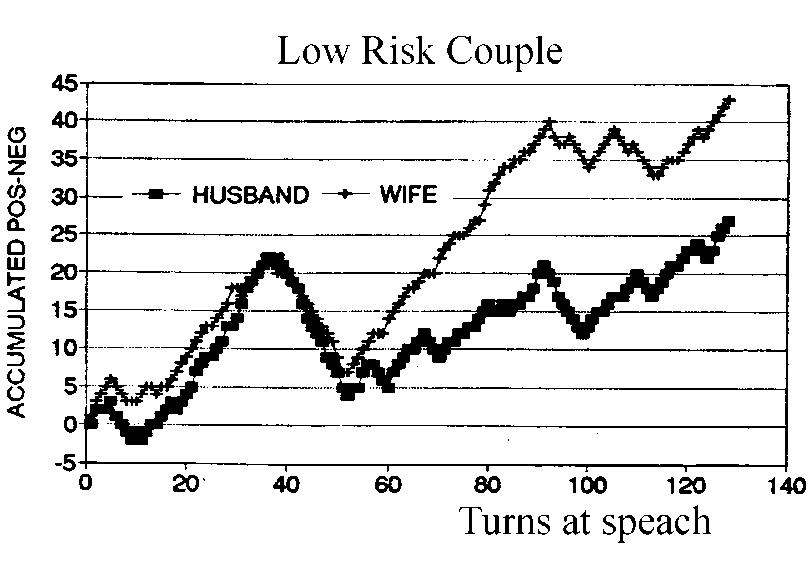 這是一對有著穩定婚姻的夫妻,好比布萊德彼特(Brad Pitt)與安潔莉娜裘莉(Angelina Jolie),雙方互動有如剛發布iphone的Apple股票指數節節上升感情。若夫妻關係很差,分數將隨著時間不斷下跌。可以預見,最終將走上布萊德彼特與珍妮佛安妮斯頓(Jennifer Aniston)的離婚結局。