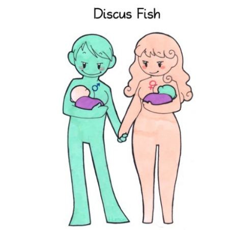 七彩神仙魚對照顧仔魚很有一套,比起其他動物,雄魚可是付出相當多的心血呢。