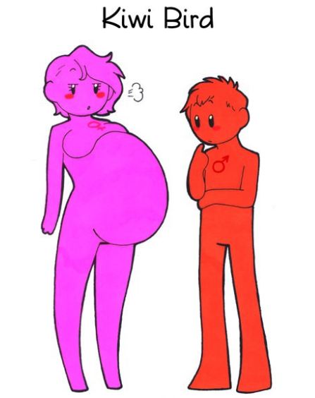 但最怪的是,牠們是鳥類當中產下與體型相比最大的蛋,與雞相當大小的奇翼鳥卻能懷著大雞蛋六倍的蛋(450公克,約體重的1/4)。這一顆蛋大到充滿了整個雌鳥身體,壓迫到她的器官使她難以呼吸,下蛋前幾天甚至無法嚥下任何東西。雌鳥的體型比起雄鳥大上一號,提供碩大無比的蛋可容納的空間。
