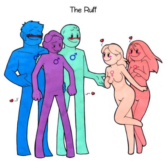 流蘇鷸是鳥類物種當中少數雄性之間的展示行為比起展示給雌鳥還要多的鳥類之一,這樣子的行為有助於雄性個體建立上下階級。從外型和行為上,牠們和側斑猶他蜥一樣具有三種類型。