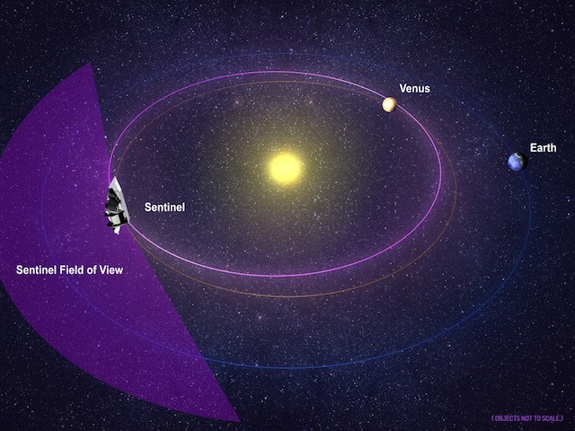 哨兵紅外太空望遠鏡以類似金星軌道繞行太陽,任何時間監測的範圍為2×5.5度,每小時可掃瞄165平方度的天區,整體守護視野則寬達200度,如此一來,它便可從太陽系內側向外監看包含地球軌道在內的區域,以避免因為太陽光輝掩蔽了這些不太明亮的小天體;這樣的軌道,約每2.2年會與地球重疊一次。