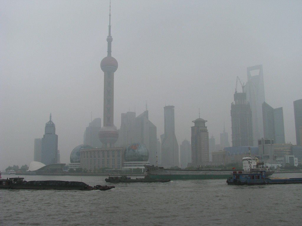 上海陸家嘴因為空氣汙染能見度不佳,新的研究發現這些空氣汙染可能會增強颱風威力。(圖片來源:flickr用戶Peter Dowley)