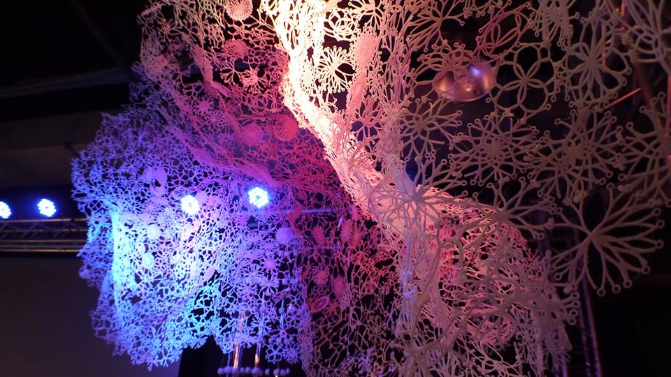 站在充滿空間感的巨大粉紅樹蔭造型的裝置藝術下,不論是誰,一定都會被優雅自然的曲線和奇幻的氛圍震懾住。Fabraft Design Lab衍象設計利用參數設計軟體( Grasshopper ),結合新興3D列印技術、尼龍材料和粉紅色染料,使用五臺3D印表機,整整7 天日夜不間斷的列印出1 ,200片樹枝圖樣的單元體,並組裝出3D列印大型裝置藝術作品「Parametric Vine 仿生衍藝」。