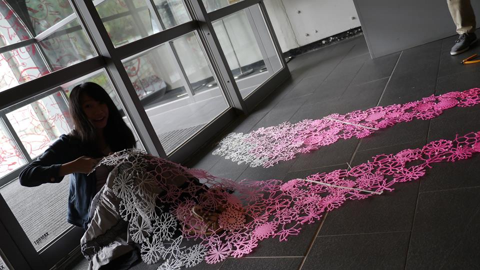 由於受到國外的衍生式設計工作室NervousSystem的啟發,Fabraft Design Lab衍象設計首度嘗試利用藝術表現手法,集結工作坊30位參加者的智慧,利用參數設計與3D列印技術,意圖開啟人人都可以是設計師的可能性。「Parametric Vine 仿生衍藝」英文作品名稱直譯的意思是參數設計的藤蔓,創作過程從藤蔓造型的概念發想,由團隊講師羅崢瑋在參數設計軟體中設計出邏輯框架,帶領參加者利用微調參數的方式瞬間產生數以千種的樹枝圖樣。在3D列印的過程中,以一片單元體6分鐘的速度印製出1 ,200片樹枝圖樣的單元體,接著用染料加工剛印製完成的樹枝單元體染成繽紛的粉紅色,最後合力組裝完成。如此浩大的工程,最大的挑戰在於3D列印單元體的過程,以輪班的方式不間斷地列印,彷彿是一場馬拉松比賽,在在考驗著大家的意志力。