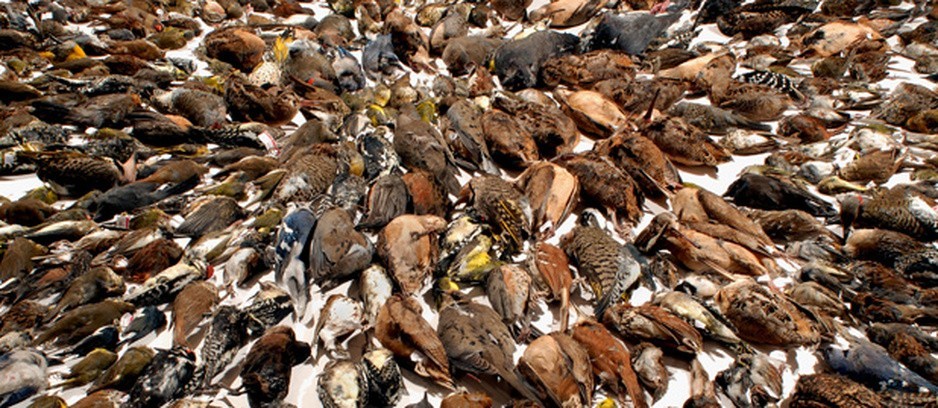 美國林務署(United State Department of Agriculture, Forest Service; USDA Forest Service)在2005年的評估報告中指出[1],鳥類因人為因素死亡的主要原因是撞擊建築物玻璃致死。估計在美國每年造成5億5千萬隻鳥類死亡,占總數的58.2%,其餘因素分別是電線(1.3億隻)、野貓(1億隻)、車輛(8千萬隻)、殺蟲劑(6千7百萬隻)、基地台鐵塔(450萬隻)、風力發電機(2.85萬隻)、飛機(2.5萬隻)及其他(漏油汙染、漁業混獲等)。尤其在春天鳥類繁殖季時,以及秋天鳥類遷徙時,更是撞擊致死的高峰。