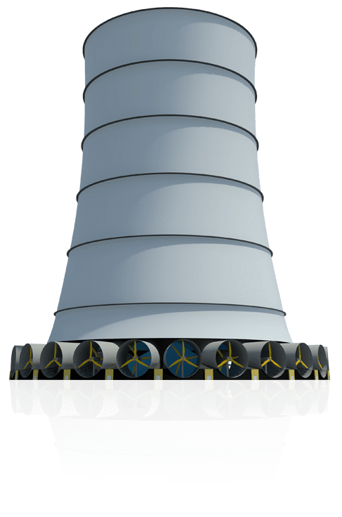 在乾燥炎熱的氣候環境下,高塔透過沉降氣流進行發電。在中空的巨大高塔內對位於高處的空氣灑水,會增加高處空氣的濕度與重量,較重的空氣開始沉降並逐漸加速,到達底部時風速可達每小時80公里,相當於台灣九級風的速度。高塔底端設有52座隧道,並於隧道內設置風力發電機組,當空氣快速由隧道中離開時便會推動葉片,產生可觀電力。