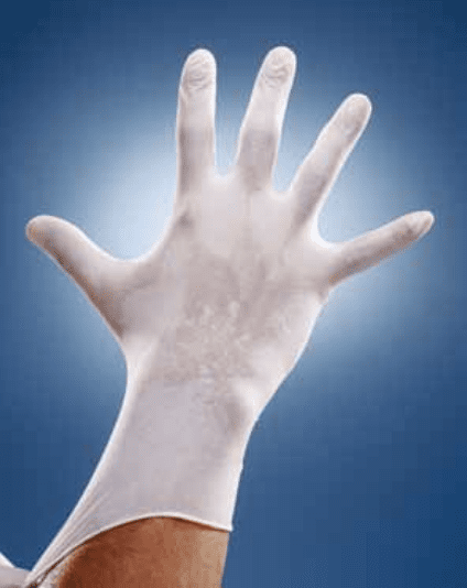 現在醫護人員已經慣常使用手套,以免傳染病在病人以及醫護人員之間散播。這些醫療手套可由乳膠、乙烯或其他材料製成。以往手套中會灑入石松粉(lycopodium powder)或滑石粉,以方便穿脫,但是後來發現這兩種東西如果沾到傷口上會造成傷害,所以在 1970 年代後,大多就改用玉米澱粉了。現代許多醫療手套都不含粉末,而以特殊的製程讓手套沒有那麼黏。乳膠手套能夠讓醫護人員活動便利,同時保留敏銳的觸覺,但是有些病人和醫護人員對乳膠過敏,這是就要避免使用。