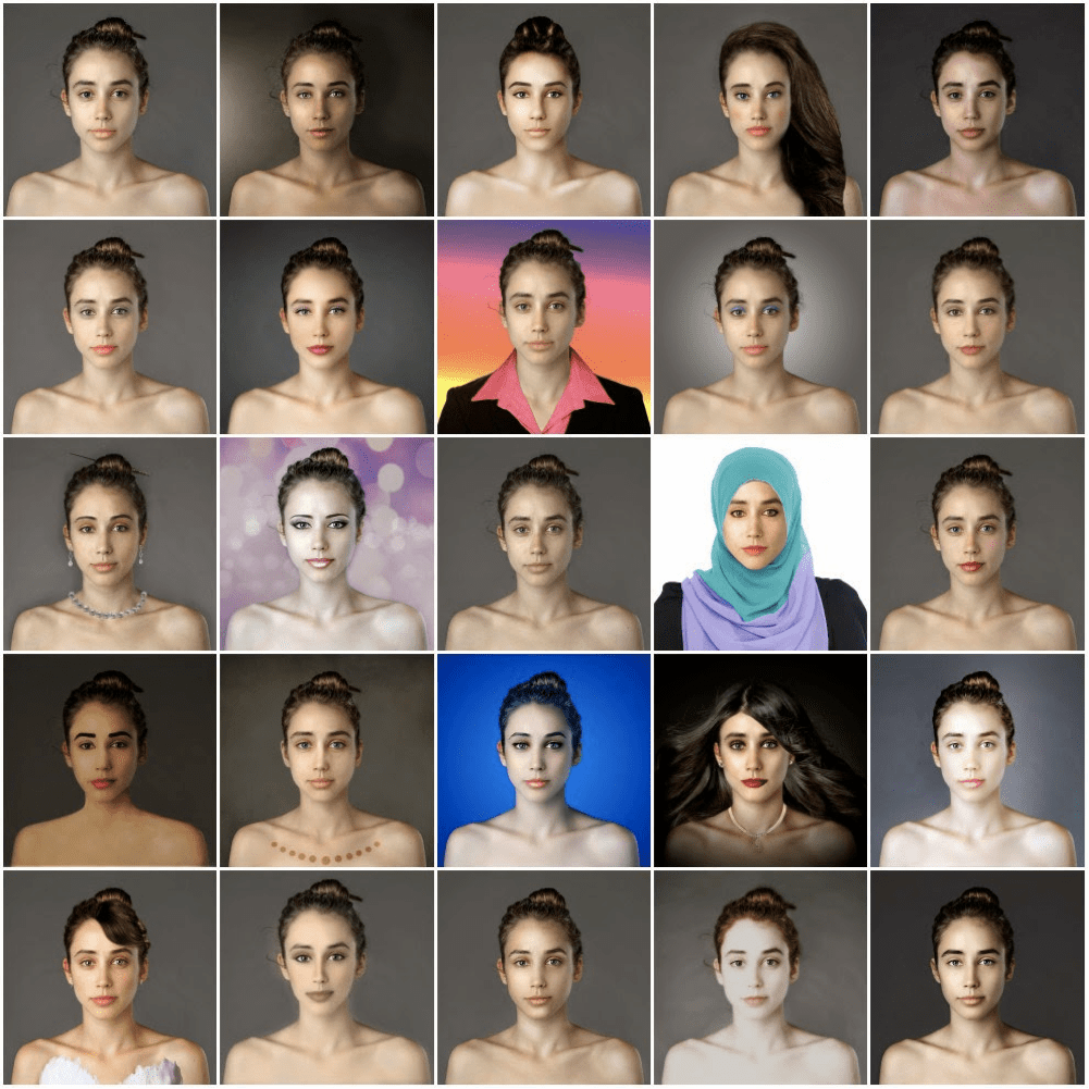 但是,若仔細看看這些修改過的照片,大部分的照片似乎僅僅是反映出個人修圖技巧而非反映出各國的審美觀。在這裡我們試著用不同的方法來將Esther的相片轉換到各國不同的臉型。