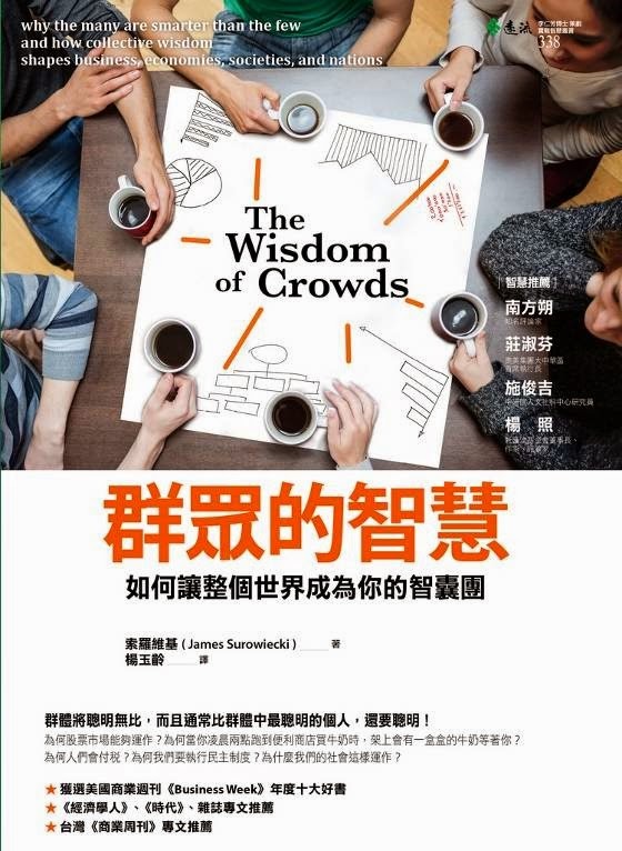 有些書,決定不得不讀,是因為看到太多書引用該書了,像是《群眾的智慧:如何讓整個世界成為你的智囊團》(The Wisdom Of Crowds: Why The Many Are Smarter Than The Few, And How Collective Wisdom Shapes Business, Economies, Societies, And Nations)。