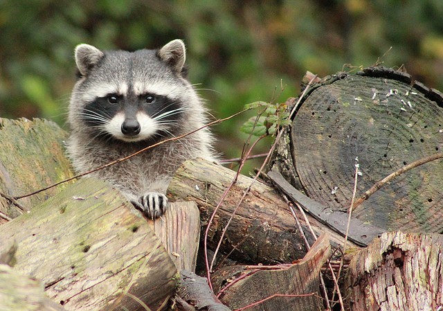 我看到這些浣熊時,最初的反應是一陣驚喜。當我發現那些奇怪的聲音居然是三隻浣熊發出來的,而且牠們正朝著我走過來時,不由得大為興奮。當牠們走近時,我看見了牠們的臉:牠們臉上的絨毛是黑色的,周圍鑲著一圈乾淨俐落的白邊,眼珠子像黑曜石一般,圓圓的耳朵喜氣洋洋的豎著,鼻子細細長長的,頸部有一圈銀色的毛皮,模樣還真是討人喜愛。