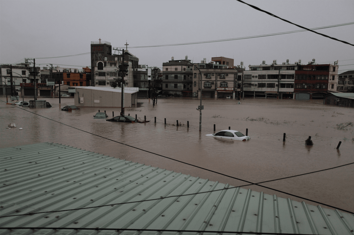 面對越來越劇烈的極端降雨,臺灣都市必須採用多管齊下的治水策略,圖為2010年高雄凡那比淹水情況。(圖片來源:WikimediaCommons, Endruw)
