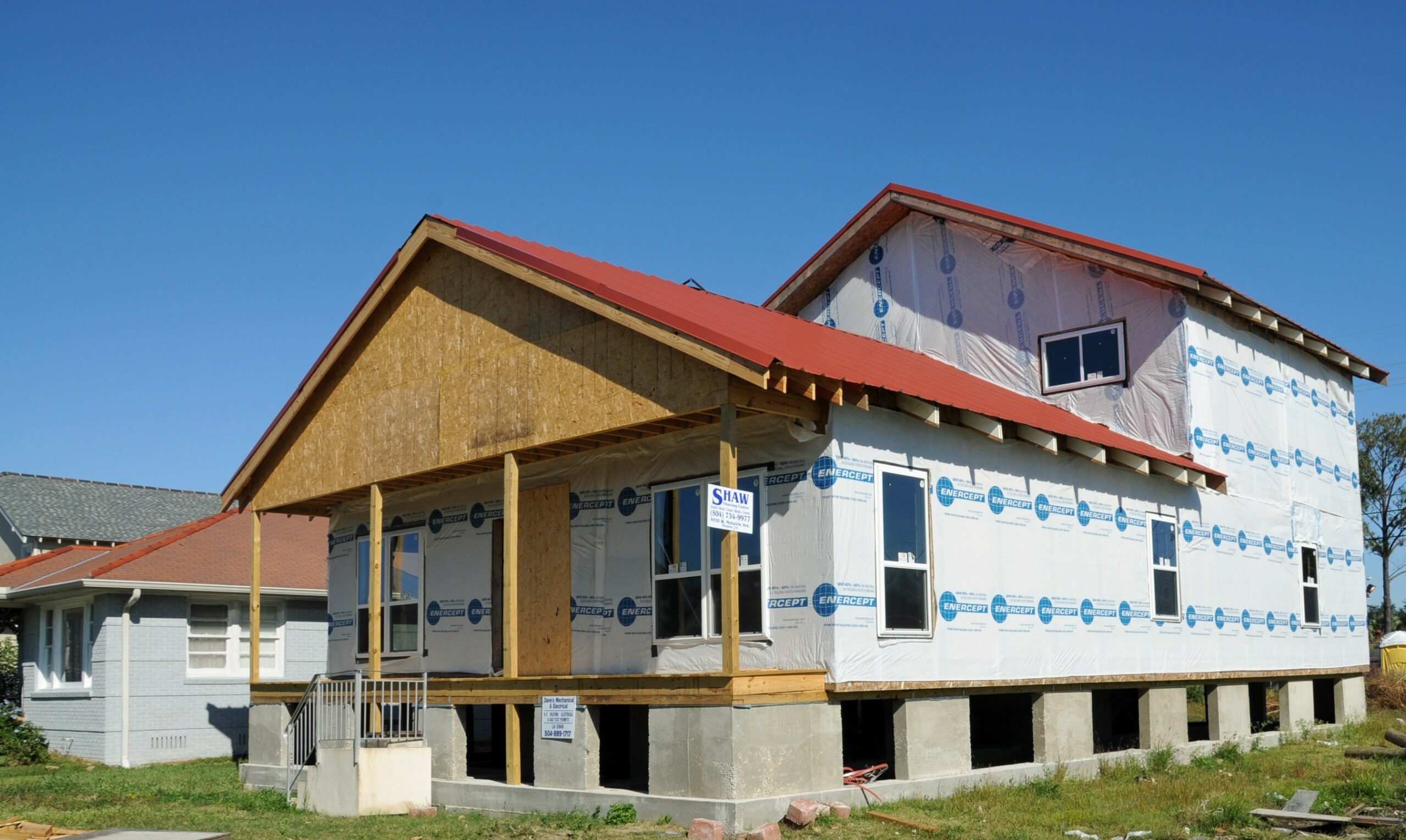 災區的重建需求如果災區企業因受災無法提供,需求將轉移到災區周遭地區,使災區周遭經濟蓬勃發展。圖為紐奧良在卡崔娜風災後一棟重建中的住宅(圖片來源:Wikimedia Commons 作者:Ralph Simcox)。