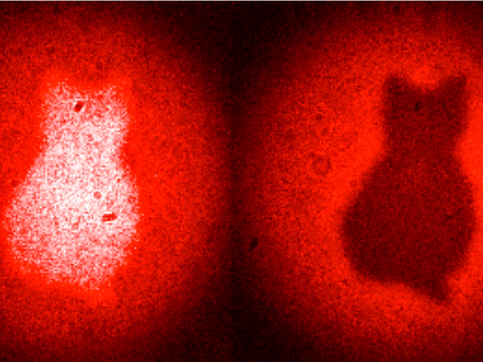 我們常用「伸手不見五指」去形容多啦A夢的手,不過這個句話也可以說明一個地方沒有光就看不到東西。這個論述有三個關鍵字:「光」、「看」和「東西」。所謂的「看」或認何一種影像記錄,其實就是以感測器(眼睛、底片或CCD等)去補捉經過「東西」折射或反射後的「光」子。這種「看」的概念,理應牢不可破,但現在面臨到挑戰,一群在維也納從事量子光學研究的科學家利用量子物理的特性設計出一個實驗,讓他們可以透過一道未經過物體的光,拍攝到該物體的影像。為了向量子力學的鼻祖致敬,他們拍攝的物體之一,是一隻貓的輪廓。