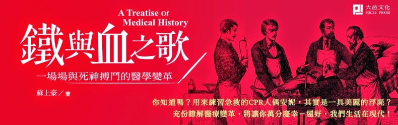 蘇上豪醫師的寫作功力,真的是令我佩服得五體投地。在出版了精彩的《開膛史》才短短一年多(請參見〈借刀醫人的開膛史〉),蘇上豪醫師不僅再出版了部令人廢寢忘食的小說《DNA的惡力》(請參見〈DNA的惡力之迷〉),還再接再厲出了一本更精彩的外科史《鐵與血之歌:一場場與死神搏鬥的醫學變革》。怎麼辦到的?心臟外科醫師是不必睡覺的嗎?還是他有一位不為人所知的雙胞胎兄弟?