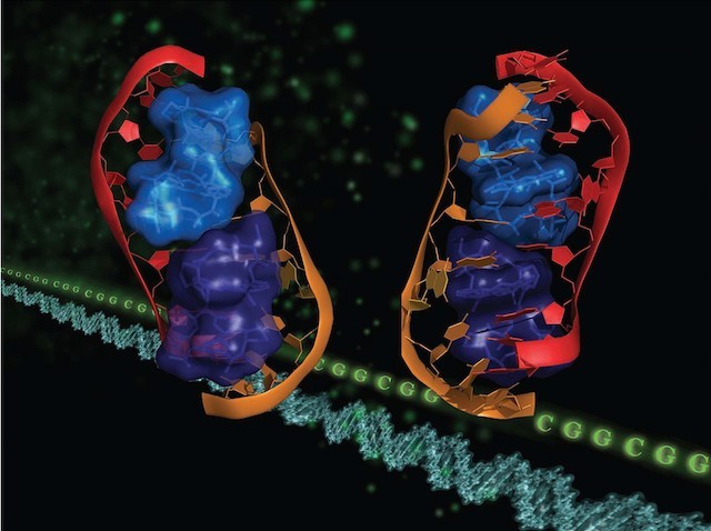 一般而言,正常人體X染色體上的FMR1基因(Freagile X mental retardation 1:染色體易碎智能遲緩基因)之CCG或CGG三核苷酸重覆約5至44次。當人體X染色體上的FMR1基因中三核苷酸超過200次的重複序列時,則會造成X染色體易脆症之發病。中興大學基因體暨生物資訊學研究所侯明宏教授研究團隊發現;有別於一般正常核酸是雙螺旋結構;此致病之三核苷酸重複序列在DNA複製期間非常容易形成非典型之核酸四股螺旋的基因結構。此結構的形成主要導致了雙股核酸螺旋不正常滑動,因而造成三核苷酸重覆序列過度擴增之基因突變。此研究結果首度揭開了X染色體易脆症在致病過程中機制的奧秘,此成果於今(2014)年9月獲得國際頂尖專業期刊《應用化學》(Angewandte Chemie- International Edition)刊載。