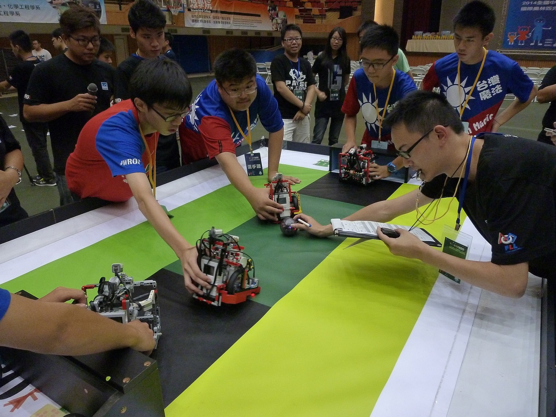 在競賽場上,臺中市西苑高中的「很盟對不隊」表現相當突出,以滿分拿下冠軍。隊員們都是「未來工程數位研究社」社團成員,這臺機器人是從4月起社團30幾人共同投入討論、參考他校機型,並持續設計改良的成果。成員周炫佐表示:機器人的重心構造與程式要同時設計,否則可能在執行動作時不穩或打滑。該隊的機器人有個像彈匣一樣的特別構造,可夾取正常積木,挪出別的空位存放黑積木。
