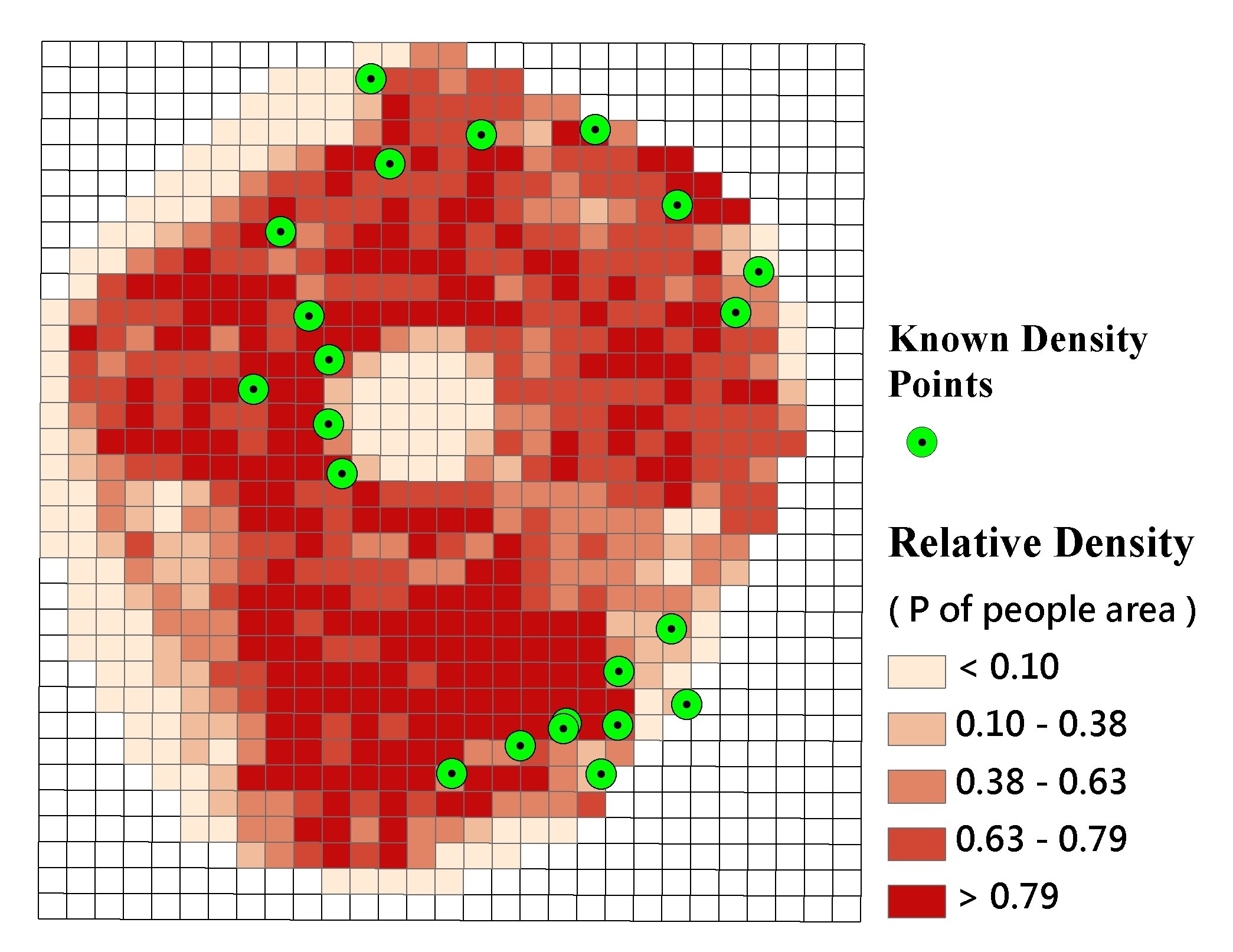 到此為止,我們還無法將這些「點」密度,推廣到大範圍「面」的人口密度。