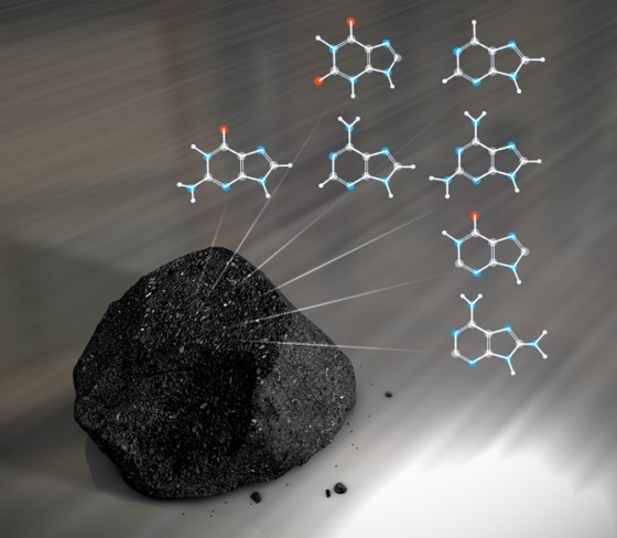 Callahan等人研究了12個富碳隕石樣本,其中9個是在南極洲發現的。利用液相色層分析儀、質譜儀等儀器擷取並分析化學組成的結構,結果發現腺嘌呤(adenine)和鳥嘌呤(guanine),這兩種都是DNA組成之一,稱為「核鹼基(nucleobase,或簡稱鹼基)」;另外還發現次黃嘌呤(hypoxanthine)和黃嘌呤(xanthine)等成分。DNA像螺旋樓梯,腺嘌呤、鳥嘌呤和另兩種成分連結兩股螺旋結構,形成一個雙螺旋階梯狀的構造,這些都是告訴細胞工廠要產生哪些蛋白質的編碼或工作指令。次黃嘌呤和黃嘌呤不在DNA內,而是用在另一種生物過程中。