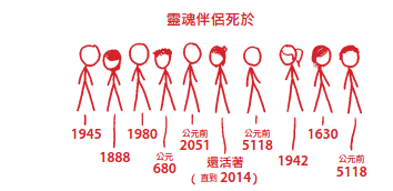 一堆問題馬上跟著來了。首先,你的靈魂伴侶還活著嗎?曾經活著的人有幾千億那麼多,而目前活著的人只有 70 億(也就是說,以人的死活狀況來看,死亡者的比率是 93 %)。如果我們都是隨機配成一對一對的,那我們的靈魂伴侶有 90 %的機率老早就死了。