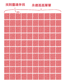 可是,如果我們真的有一個命中注定、隨機分配的完美靈魂伴侶,而且我們跟其他任何人在一起都不會快樂,那怎麼辦?我們找得到彼此嗎?