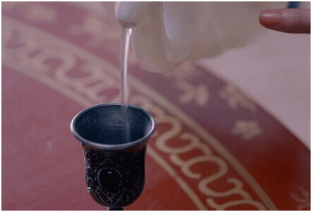 古人這麼能喝,除了腰帶質量過關,與當時的釀酒技藝也不無關係,簡單的說,古人說的「濁酒」就是現代的醪糟汁(江米甜酒)。由於古代衛生條件有限,釀造出來的酒從次到好呈綠,紅,黃,琥珀四色,口味則從酸苦到微甜。講究的闊佬會過濾,灑脫的文(窮)人,比如白居易的「黃醅綠醑迎冬熟」,指的就是未過濾的黃酒和青酒。與漢人水煮不同,唐人會放到火上燒至沸騰來殺菌,這個步驟叫燒春。這樣做出來的酒口味甜而度數低,甚至不如葡萄酒,因此李大桶等人「會須一飲三百杯」與其說在拼肝,不如說是拼膀胱。只是鄭小姐倒出來的酒是透明色,通常是最次的綠酒過濾後所接近的顏色,堂堂皇家喝這個寒磣不說,對下毒的無色無味也提出了不小的挑戰。